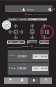 - In the ‘Utilities’ tab, select the ‘Z-Axis Home’ button to move the bed into the origin position.