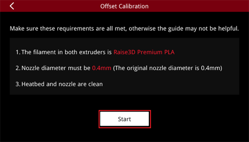 15. After the nozzle been replaced, run the five-step wizard to calibrate the nozzle’s Z probe Offset, it is recommended to adjust the height of the left and right nozzles as well. (For more information please refer to the tutorial: Manual E2 – How to Adjust the Height of Left and Right Nozzle – V1.0). Note: You can find the “Offset Calibrations” at “Settings>Machine>Maintenance>Offset Calibration”