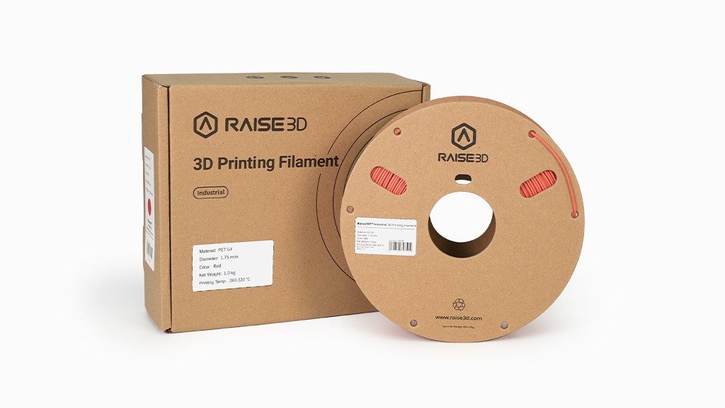 *Due to the higher carbon fiber content of PET filaments, when printing PET GF, an extra wear-resistant nozzle and extrusion system are required for a consistent printing performance. The E2CF and the RMF500 are specially designed for printing high-performance fiber-reinforced composite filaments. As such, it is recommended to use the Raise3D Industrial PET GF filament exclusively on the E2CF and the RMF500.